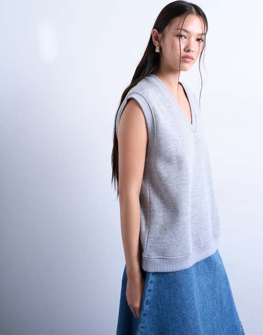 Topshop – Zapinany na guziki prążkowany podkoszulek w grafitowoszarym kolorze