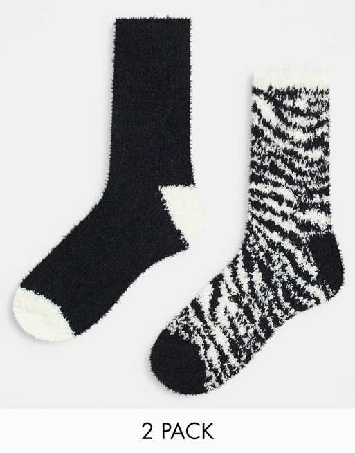 Topshop – Zestaw 2 par puszystych skarpetek ze wzorem w zeberkę