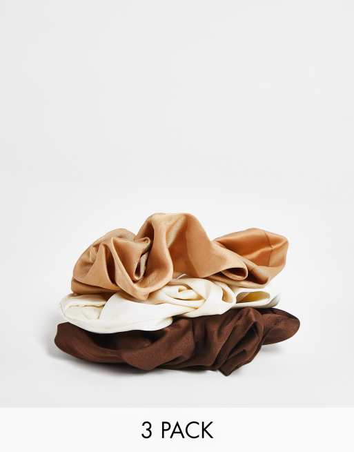 Topshop – Zestaw 3 satynowych gumek do włosów w odcieniach brązu
