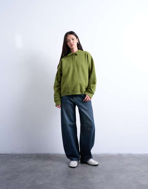 Topshop – Zielona bluza dresowa z kołnierzykiem polo