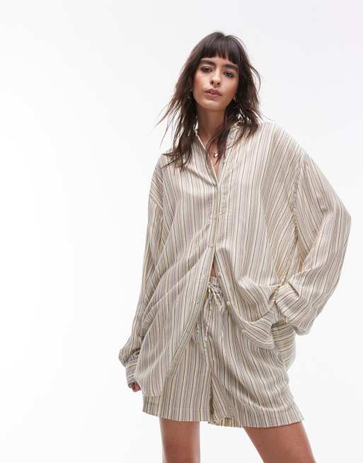 Topshop – Zielona luźna koszula w paski, część zestawu