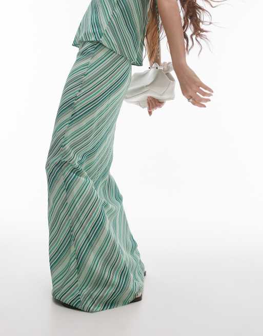 Topshop – Zielona spódnica maxi z żorżety w skośne pasy