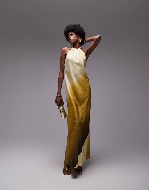 Topshop – Zielona sukienka maxi z dekoltem halter i efektem ombre