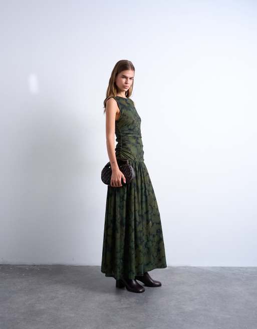 Topshop – Zielona sukienka maxi z obniżonym stanem i abstrakcyjnym wzorem