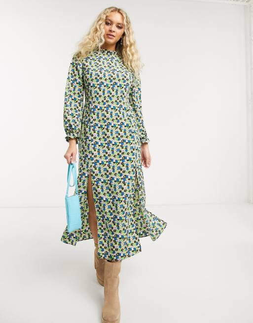 Topshop – Zielona sukienka midi z golfem w kwiaty