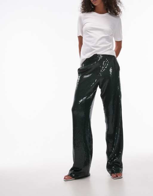 Topshop – Zielone eleganckie spodnie cekinowe, część zestawu