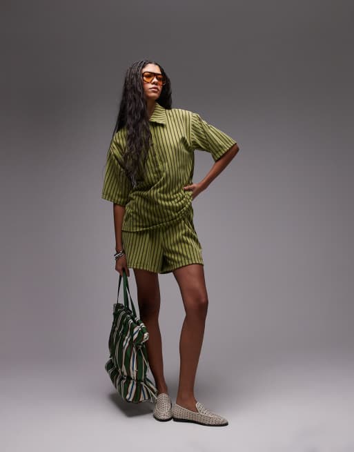 Topshop – Zielone szorty z materiału frotté w paski, część zestawu