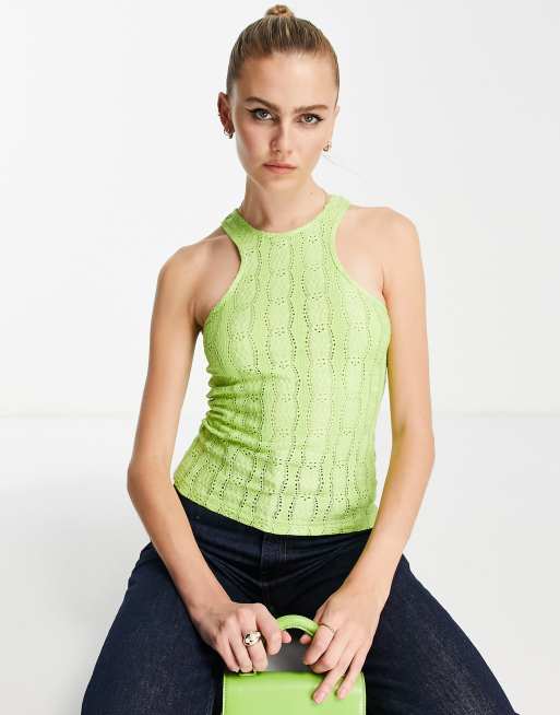 Topshop – Zielony podkoszulek o fasonie bokserki z ażurowym haftem