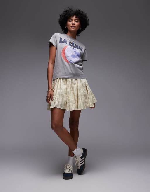 Topshop – Zwiewna bawełniana spódnica mini z godetami w żółto-zielone paski