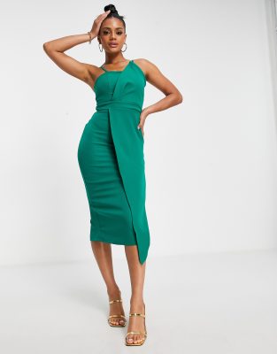 Trendyol – Sukienka midi z ozdobnym dekoltem w kolorze butelkowej zieleni