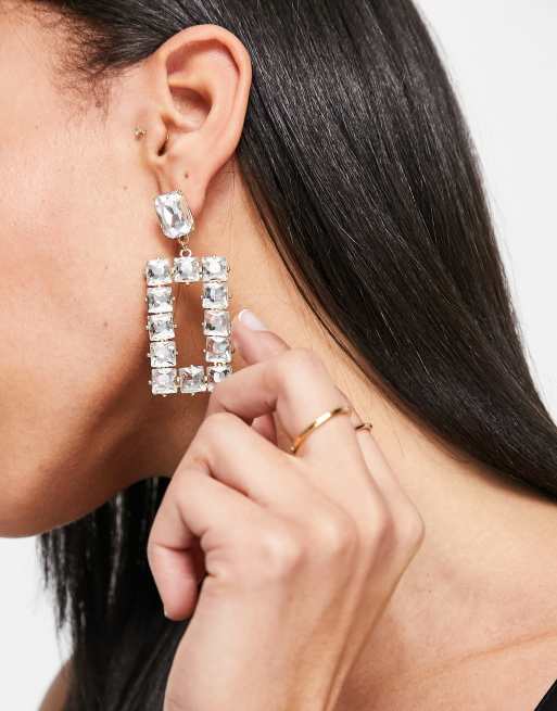 True Decadence – Długie kolczyki oversize w kwadratowym kształcie i złotym kolorze z kryształkami