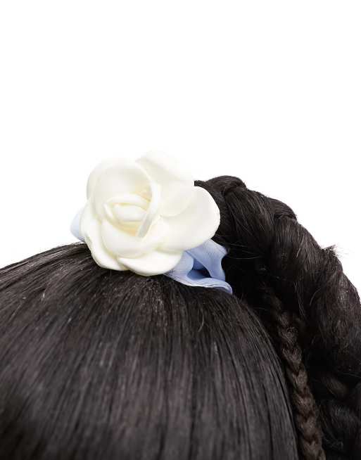 True Decadence – Jasnoniebieska, satynowa gumka do włosów z różą