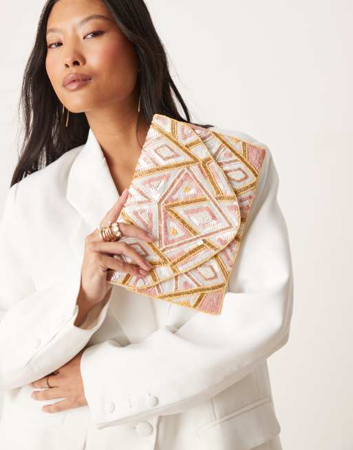 True Decadence – Zdobiona złota kopertówka z cekinowym wzorem