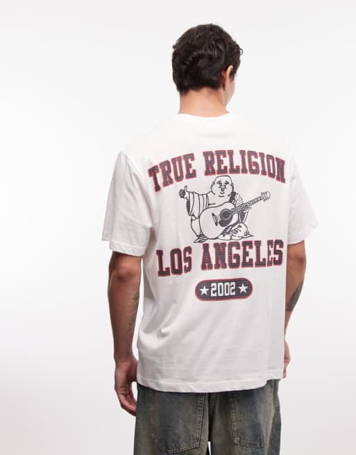 True Religion – Biały, siateczkowy T-shirt z motywem Buddy