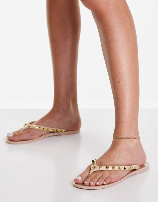 Truffle Collection – Beżowe japonki z elastycznego tworzywa z ćwiekami
