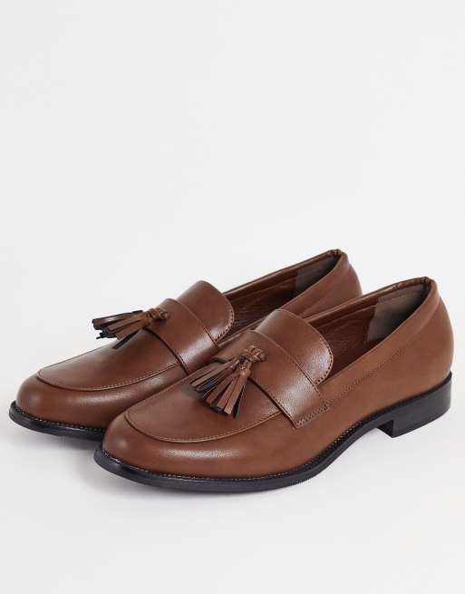 Truffle Collection – Brązowe loafersy z frędzlami z imitacji skóry