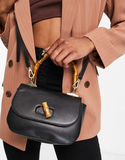 Truffle Collection – Czarna torebka crossbody z bambusową rączką