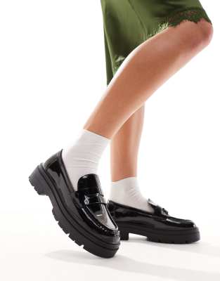 Truffle Collection – Czarne lakierowane loafersy penny na grubej podeszwie