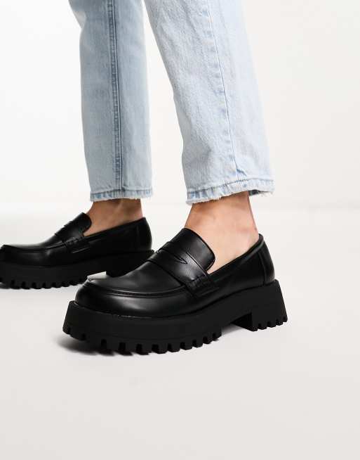 Truffle Collection – Czarne lakierowane loafersy z ozdobnym wykończeniem na grubej podeszwie