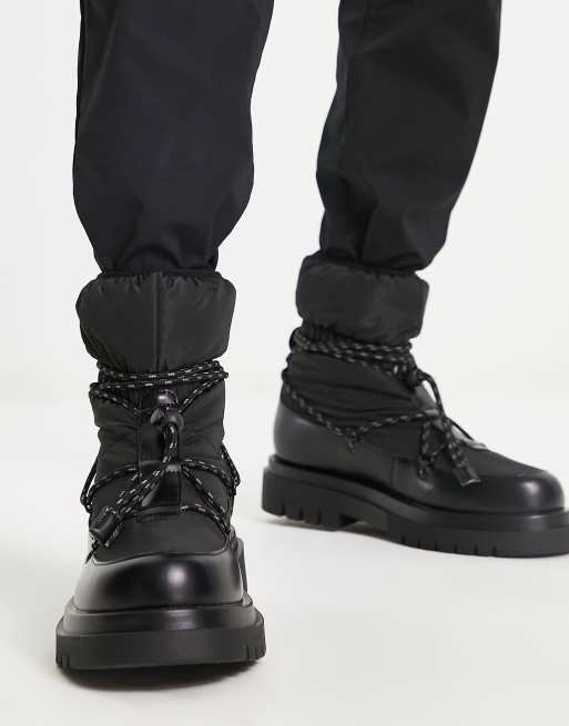 Truffle Collection – Czarne wsuwane śniegowce z imitacji skóry, ściągane na sznurek