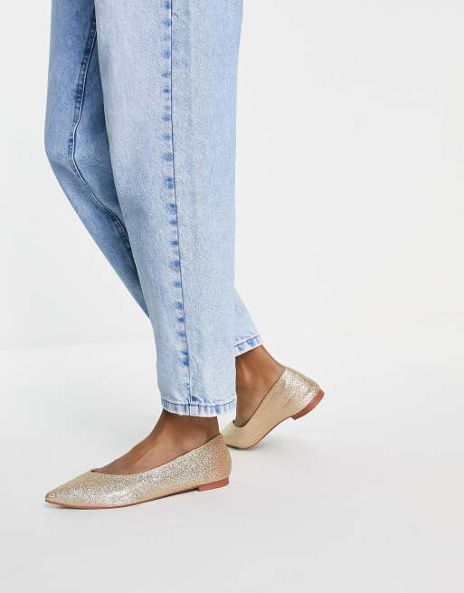 Truffle Collection – Złote brokatowe balerinki w szpic