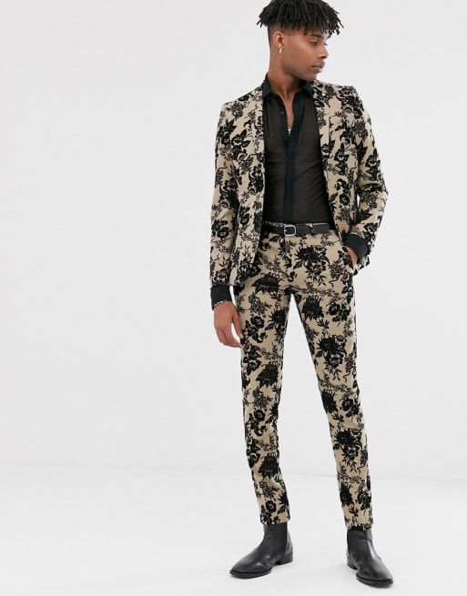 Twisted Tailor – Brązowy garnitur o bardzo obcisłym kroju w kwiaty