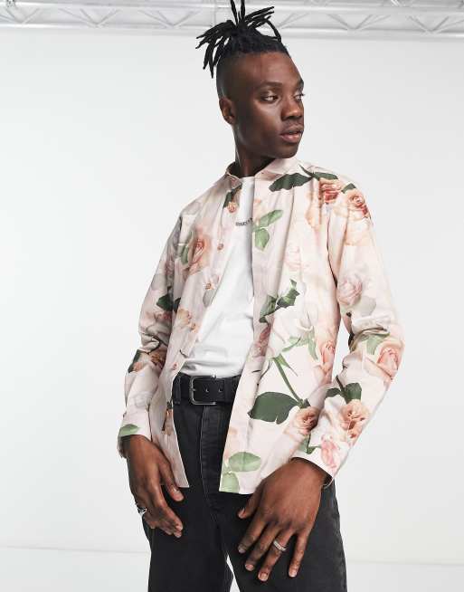 Twisted Tailor – Lincoln – Różowa koszula w kwiatowy wzór