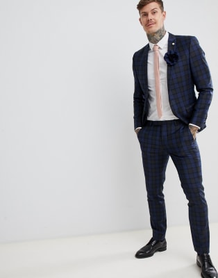 Twisted Tailor – Niebieski garnitur w kratę o bardzo obcisłym kroju
