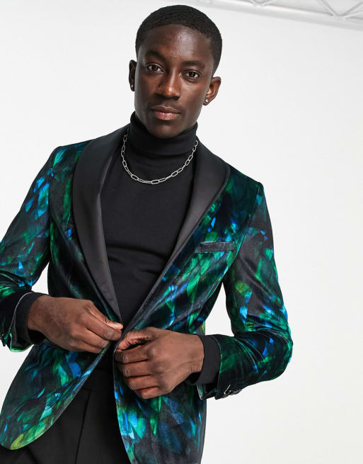 Twisted Tailor – Zielony garnitur w tropikalny nadruk piór