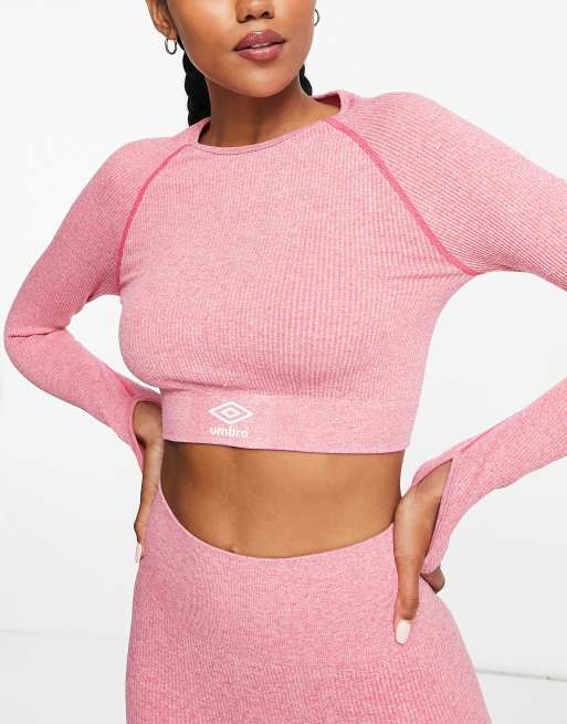 Umbro – Różowy melanżowy prążkowany krótki top bezszwowy z długimi rękawami
