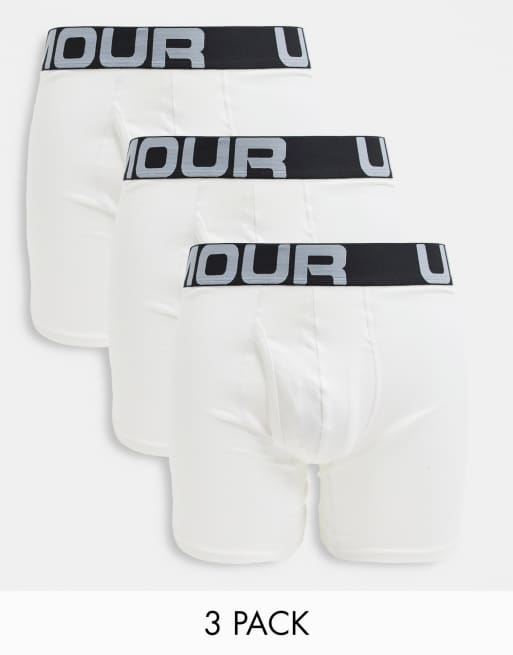 Under Armour – Charged – Zestaw 3 par białych bawełnianych bokserek o długości 6 cali