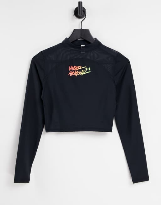 Under Armour – Czarny krótki top z długimi rękawami i półgolfem