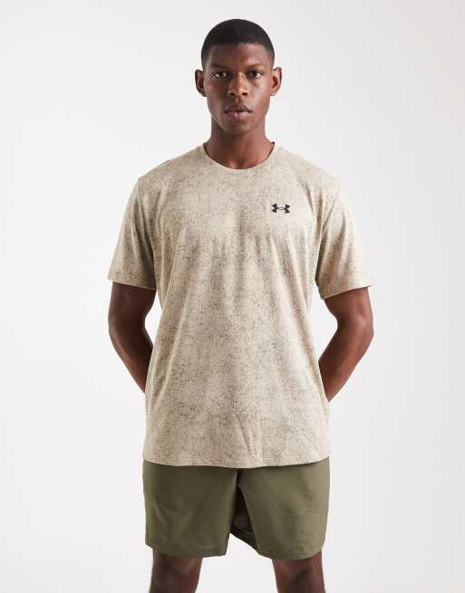 Under Armour – Tech – T-shirt w pikselowy wzór w kolorze khaki