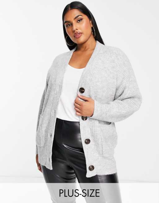 Urban Bliss Plus – Zapinany na guziki kardigan w kolorze szarym