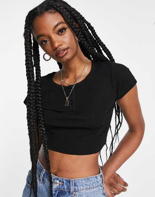 Urban Revivo – Czarny dopasowany T-shirt prążkowany