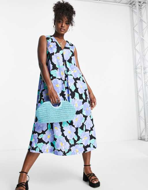 Urban Revivo – Trapezowa sukienka midi w niebieski kwiatowy wzór