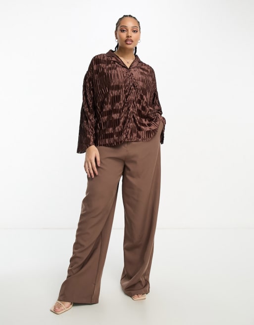 Urban Threads Curve – Czekoladowobrązowy plisowany zestaw z satyny