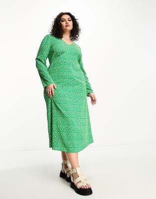 Urban Threads Plus – Zielona sukienka midi w drobny kwiatowy wzór