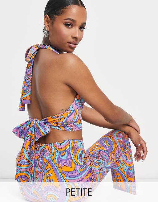 Urban Threads Petite – Krótki top z dekoltem typu halter w falisty wzór w stylu lat 70., część zestawu