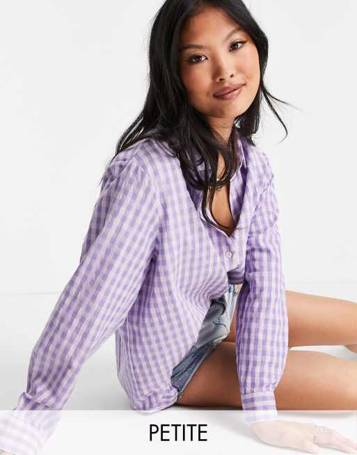 Urban Threads Petite – Liliowa koszula oversize w kratę
