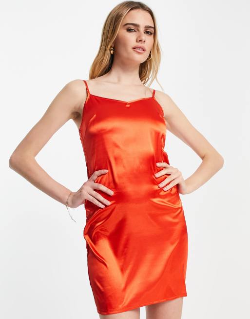 Urban Threads – Jaskrawopomarańczowa satynowa sukienka mini na ramiączkach