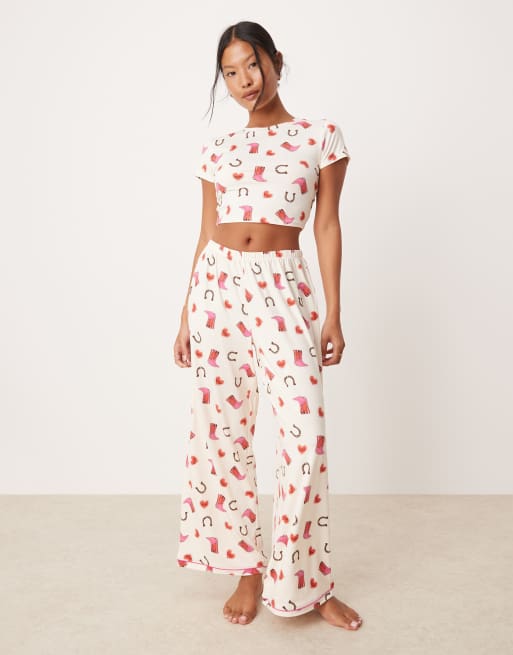 Urban Threads Petite – Piżama z poliestru w kowbojski wzór: T-shirt i spodnie