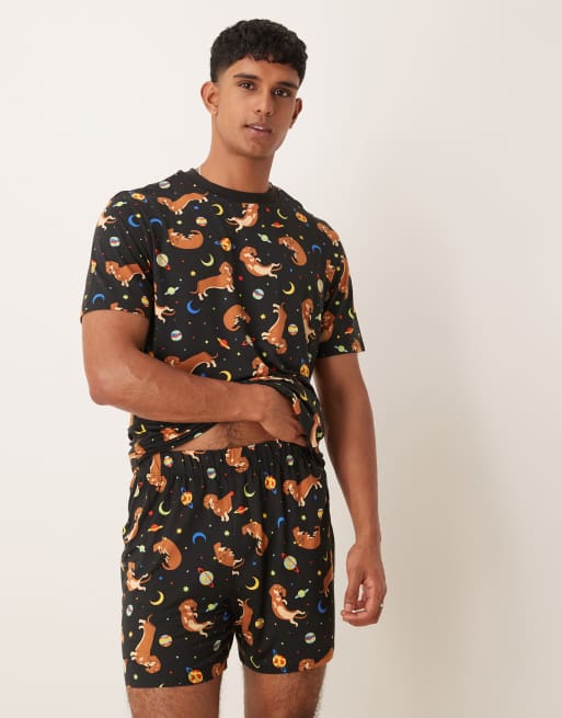 Urban Threads – Poliestrowa piżama ze wzorem w psy w kosmosie: T-shirt i szorty