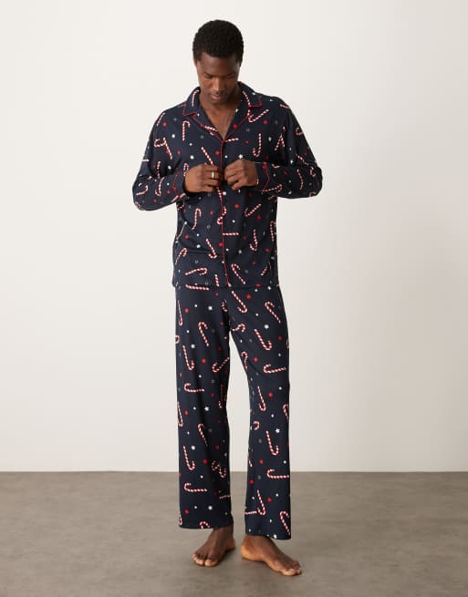 Urban Threads – Poliestrowa świąteczna piżama w laski waniliowe: koszula z długimi rękawami i spodnie