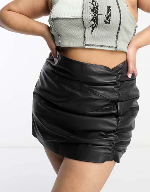 Urbancode Curve – Czarna marszczona spódnica z naturalnej skóry