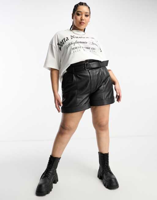 Urbancode Curve – Czarne szorty z paskiem ze skóry naturalnej
