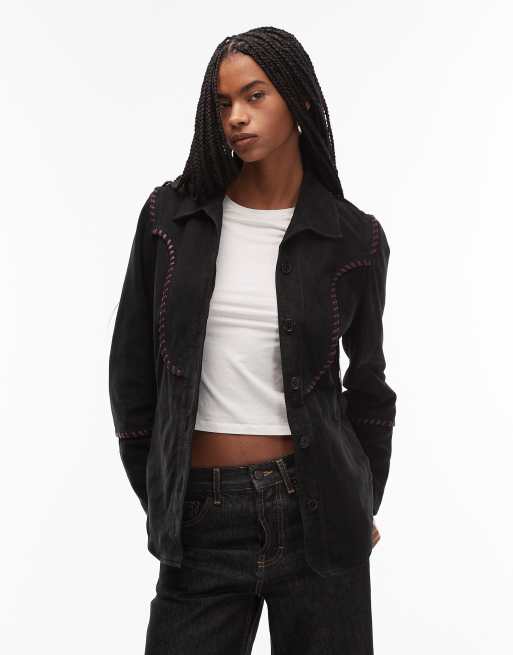 Urbancode – Czarna zamszowa kurtka w stylu boho z frędzlami