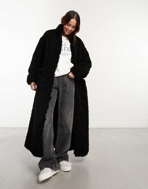 Urbancode – Czarny płaszcz maxi ze sztucznego kożuszka