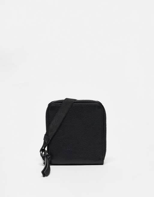 Urbancode – Czarny skórzany portfel zapinany na zamek, z odpinanym paskiem