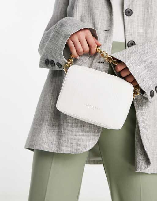 Urbancode – Mała skórzana torebka crossbody w kolorze złamanej bieli z łańcuszkiem